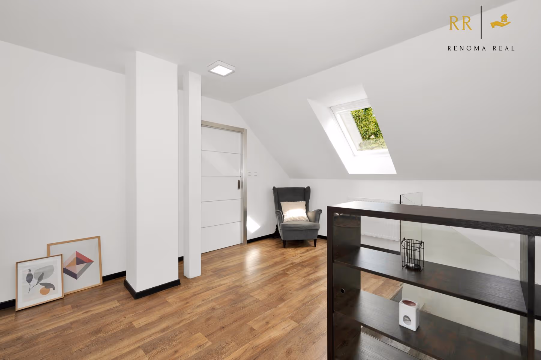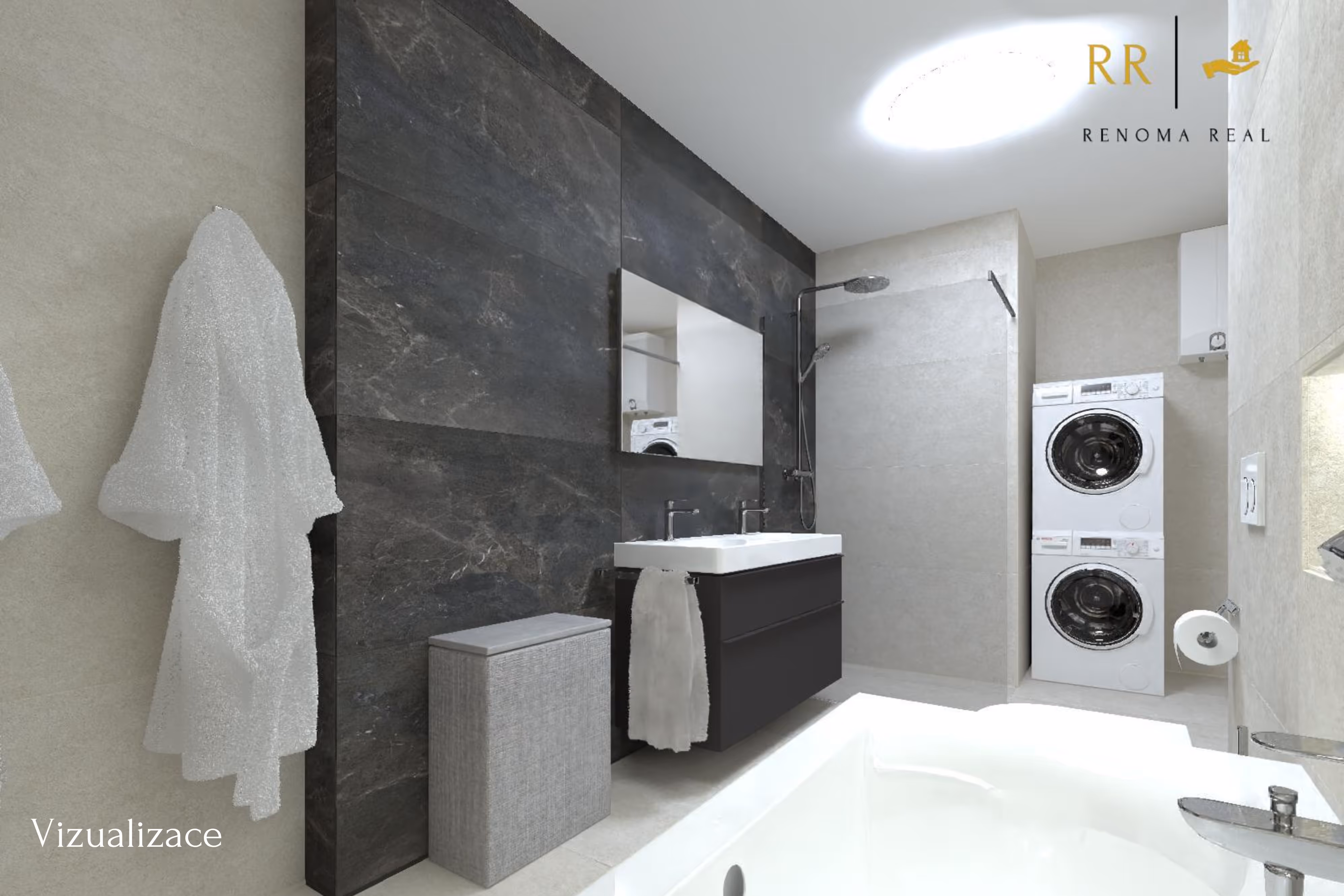 Současní majitelé uvažovali o renovaci koupelny - její možnou podobu můžete vidět na vizualizacích ve fotogalerii. V případě potřeby je možné v 2.NP vytvořit další pokoj a změnit velmi jednoduše dispozici na 5+kk (více informací rádi poskytneme při prohlídce).